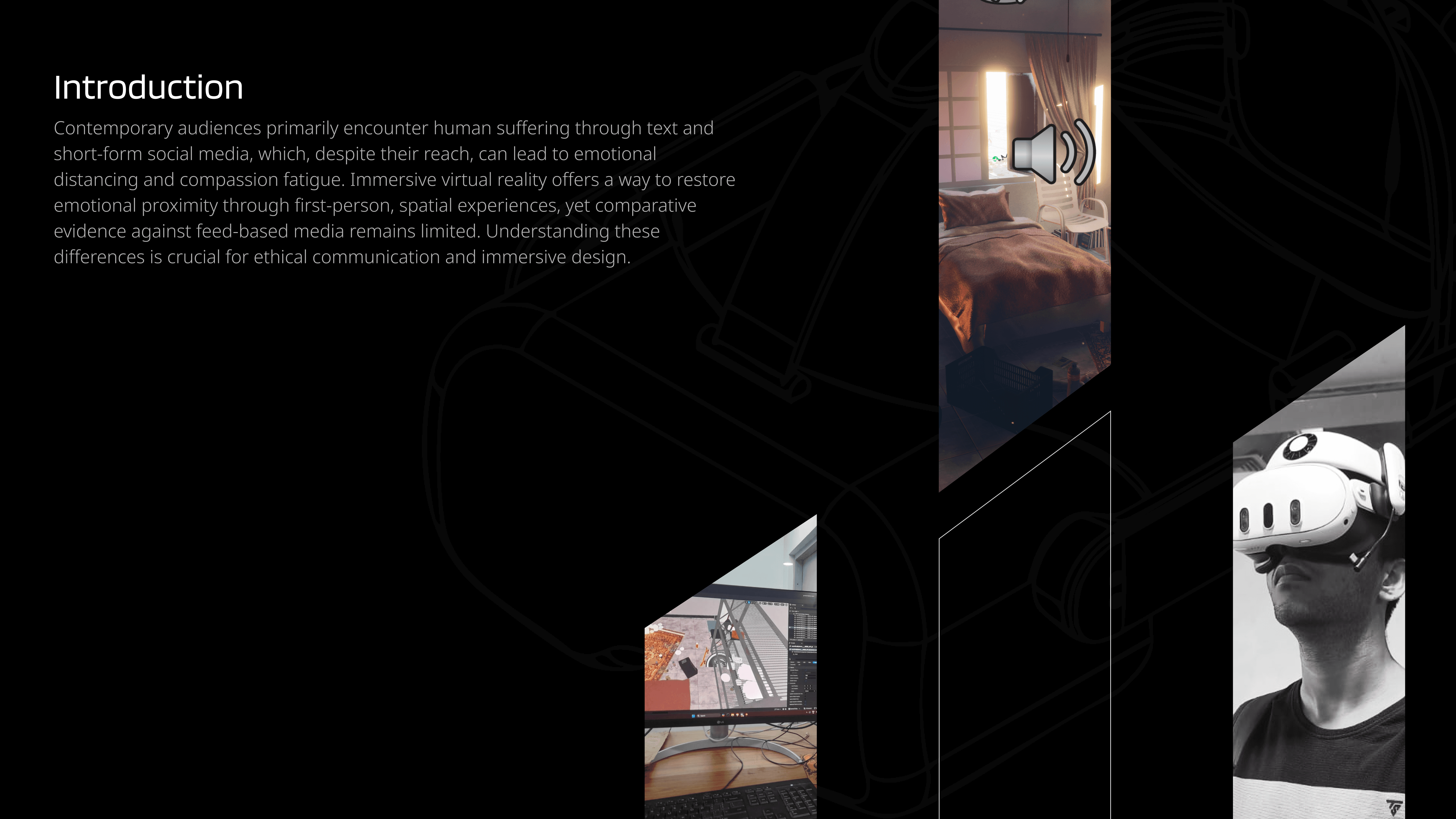 Contemporary audiences primarily encounter human suffering through text and short-form social media, which, despite their reach, can lead to emotional distancing and compassion fatigue. Immersive virtual reality offers a way to restore emotional proximity through first-person, spatial experiences, yet comparative evidence against feed-based media remains limited. Understanding these differences is crucial for ethical communication and immersive design.